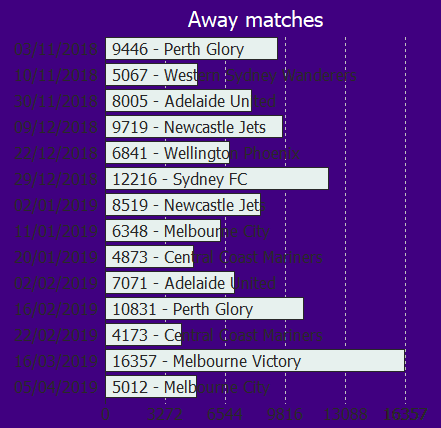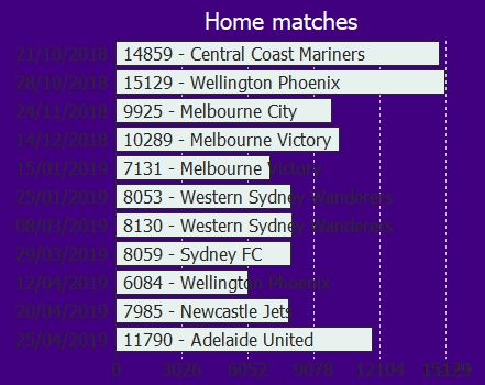 Lowest Attendance: 6084 against Wellington Phoenix 4173 at Central Coast Mariners
