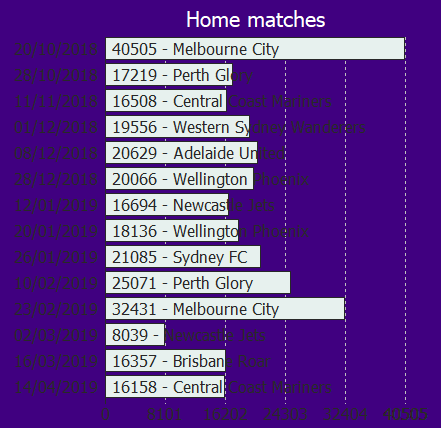 Attendance record: 40505 against Melbourne City 24306 at Melbourne City
